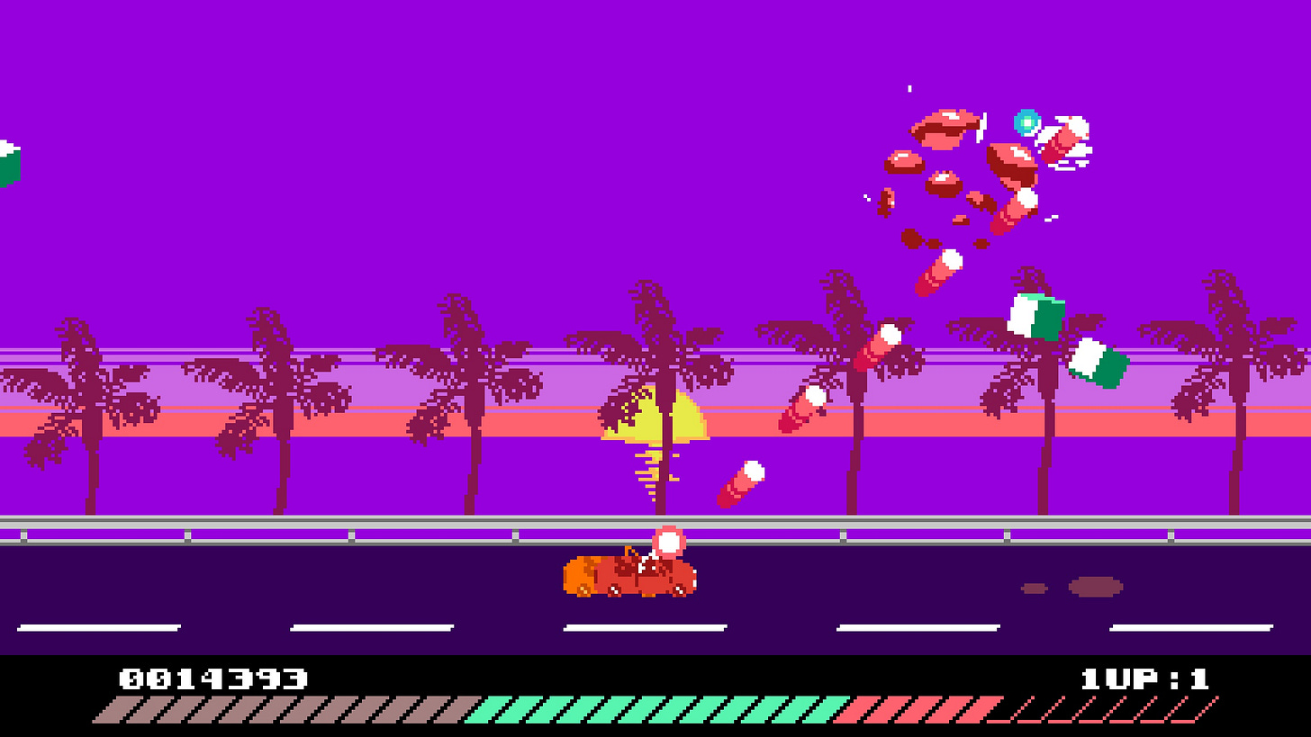 A gorgeous shooter where you drive a Corvette at sunset in Miami and blow up a bunch of spaceships and whatnot.
