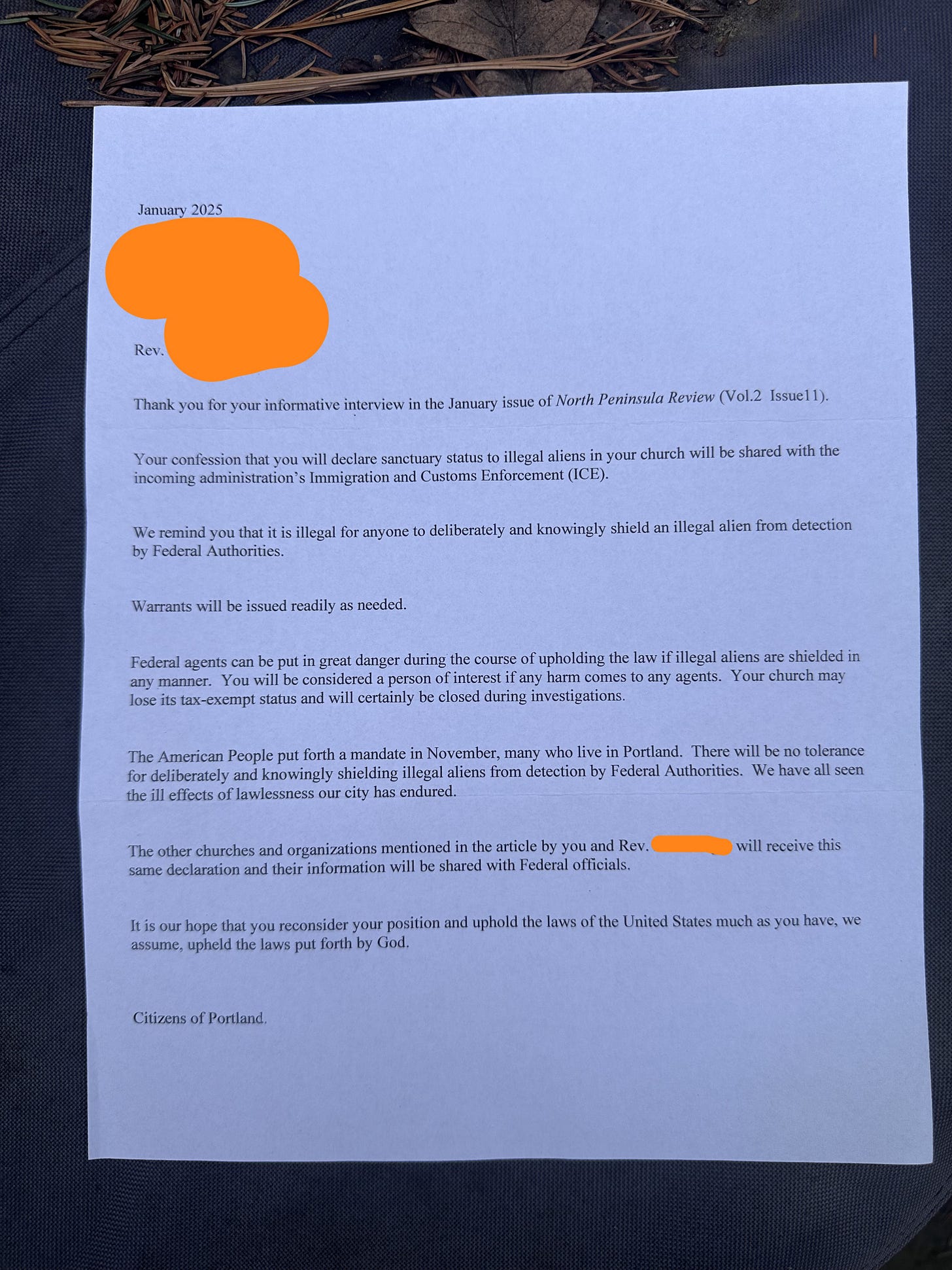 The Citizens of Portland1 have banded together to inform our church about the lawlessness that “illegal aliens” have caused our city.